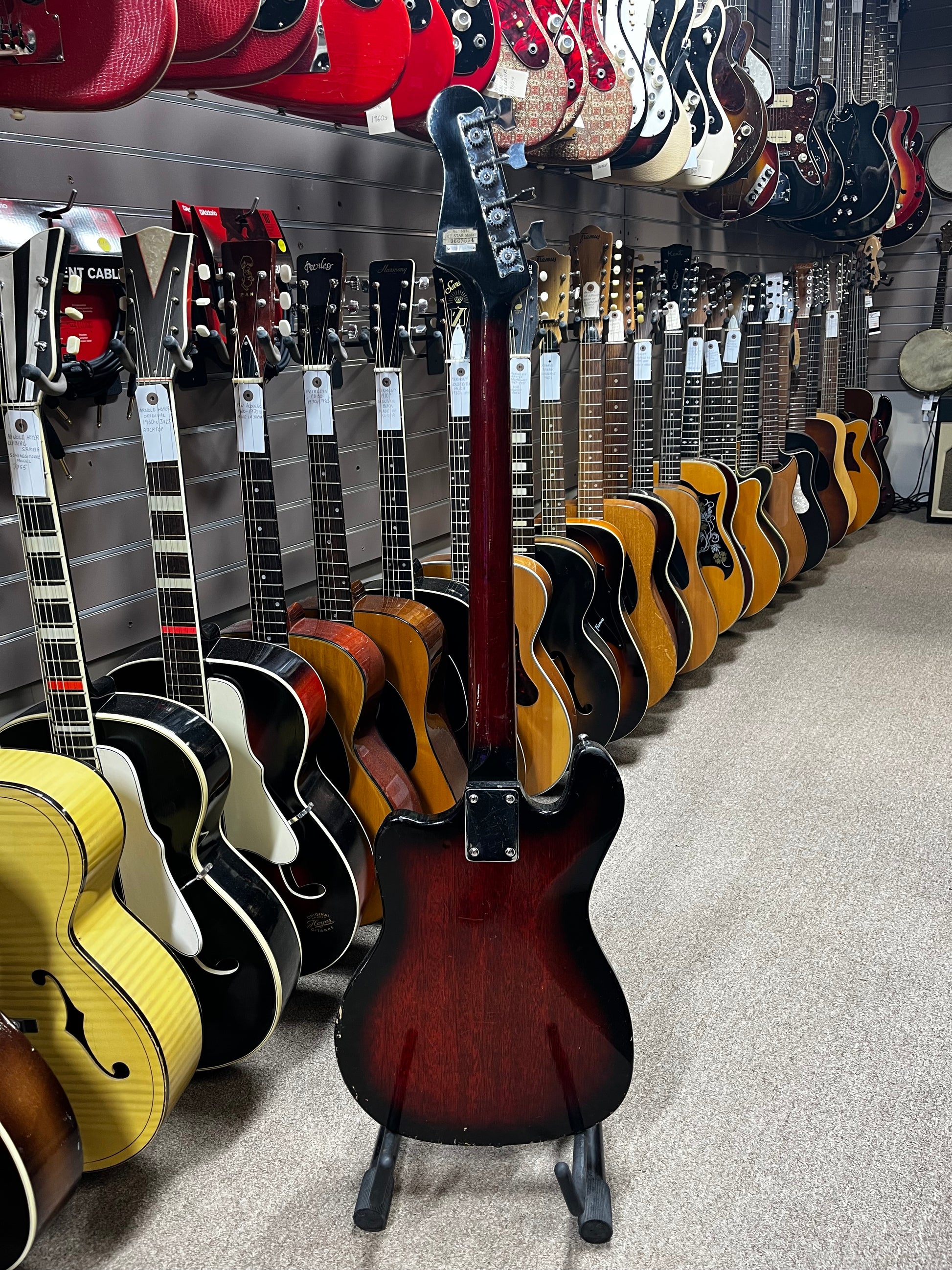 A vintage Kent Model 534 "Basin Street" electric bass guitar, which was made by Teisco in Japan around the mid-1960s.