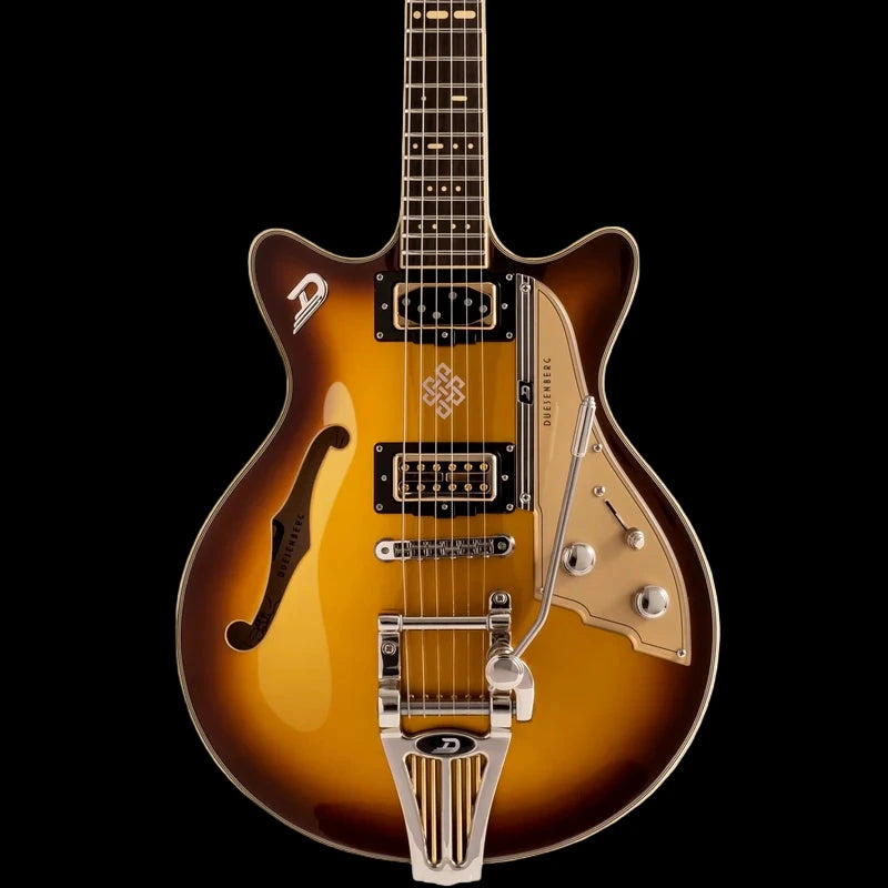 - Vibrato System: Duesenberg Radiator Tremola (custom golden grill)