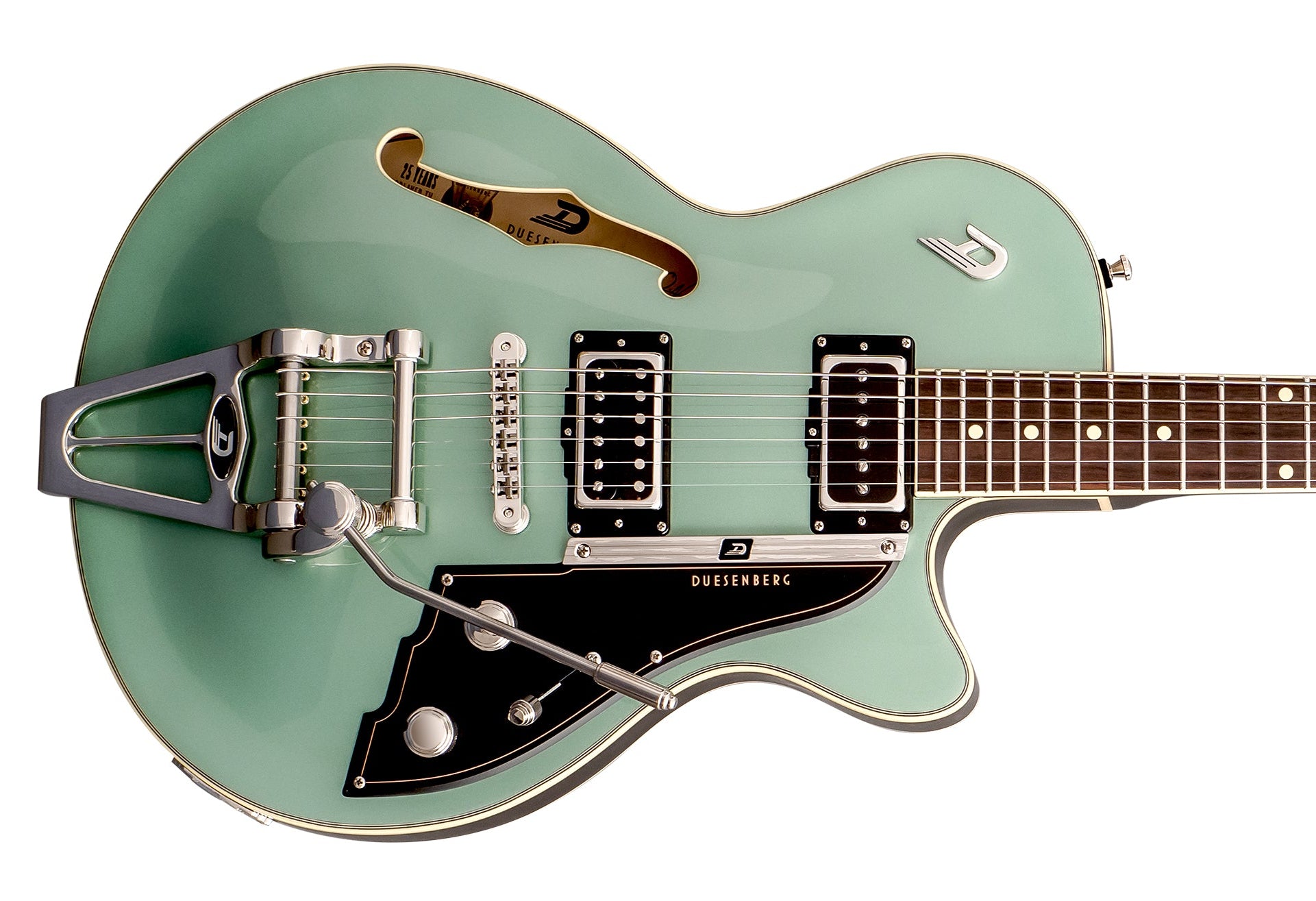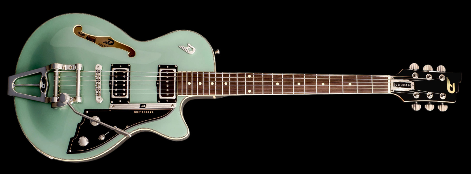 • Vibrato System: Duesenberg Diamond Deluxe Tremola (trem models only)