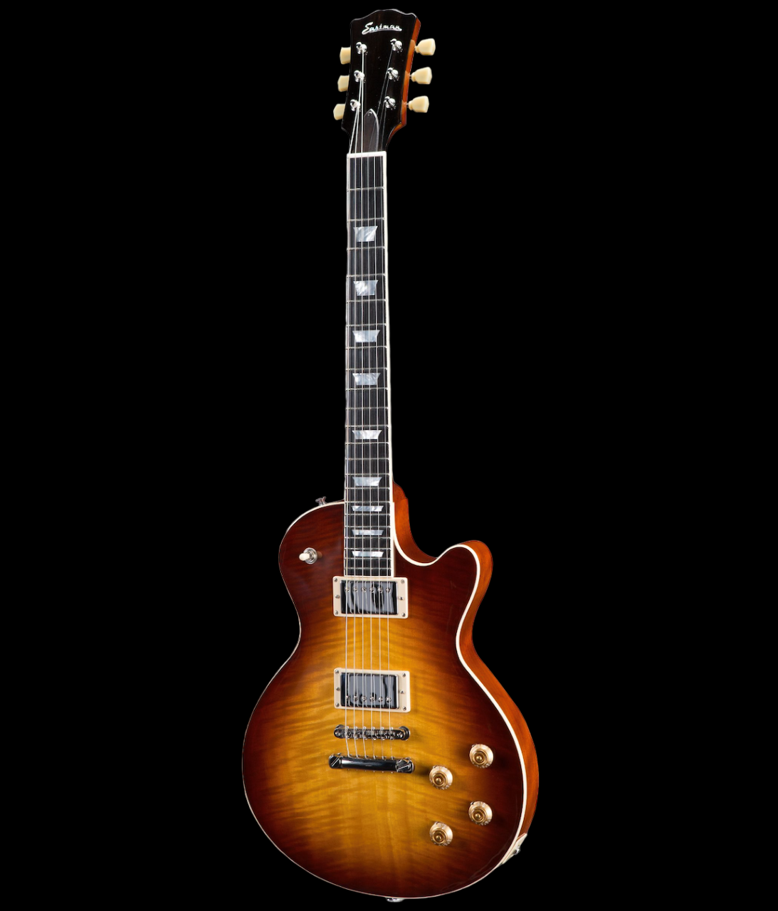 The Eastman SB59-GB Gold Burst is a single-cutaway, Les Paul-style solid-body electric guitar featuring a one-piece Mahogany body with a Flame Maple top, a comfortable Mahogany neck with an Ebony fingerboard, and a Goldburst finish. It's equipped with Seymour Duncan '59 humbuckers for classic, articulate tones, and high-quality Gotoh hardware, providing exceptional craftsmanship and a versatile, premium feel reminiscent of custom-shop instruments.