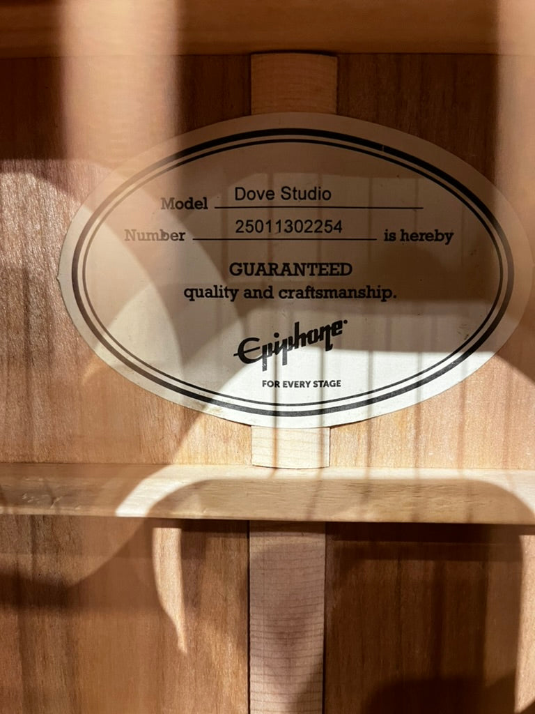 Though there are many guitars that claim to be "historic" or "vintage" styled, only one comes with a Limited Lifetime Guarantee and Gibson 24/7/365 customer service and the experience of a century of guitar making. Start with the best. Visit your Long & McQuade store and plug in with the Epiphone Dove Studio Acoustic/Electric today.