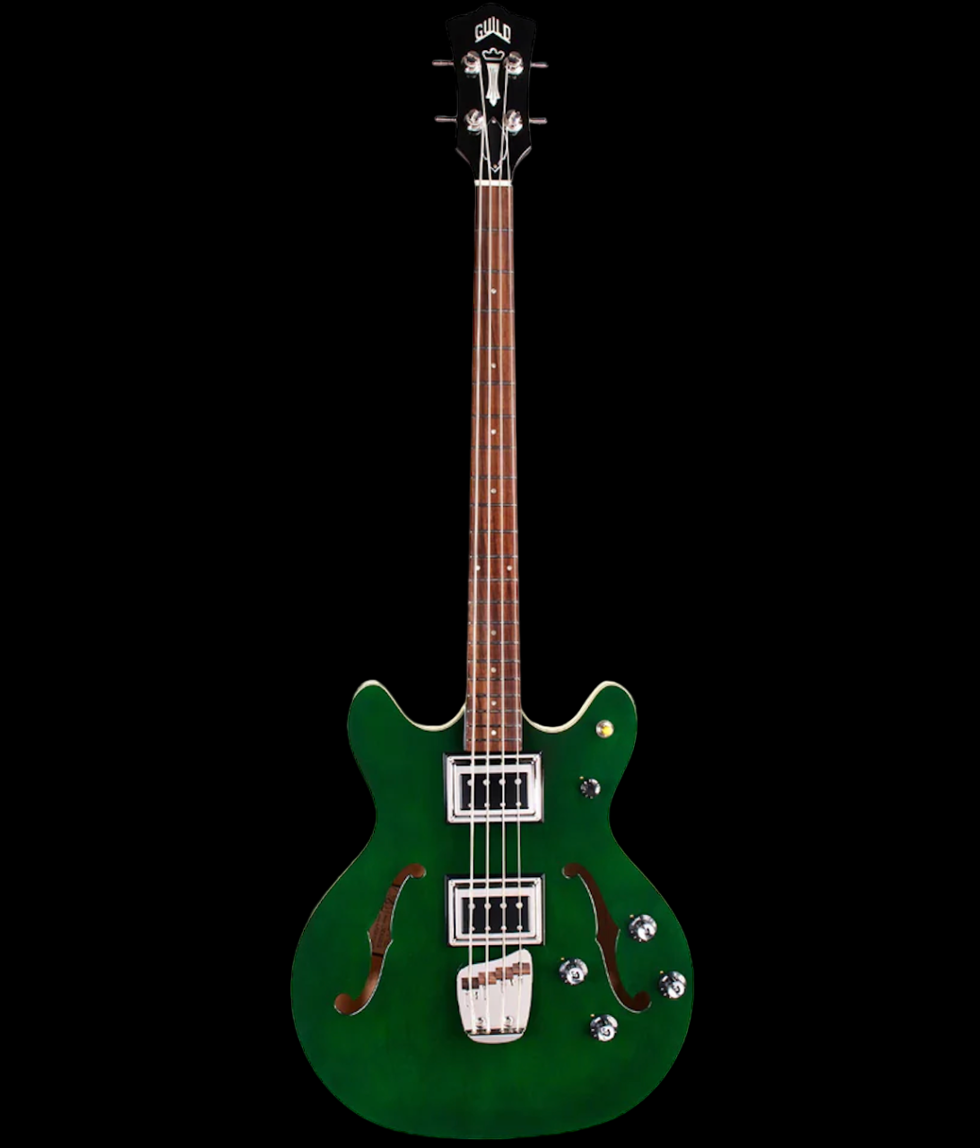 The Starfire Bass II is a dual-pickup semi-hollow bass guitar that adds sonic options to one of Guild’s most iconic models, the Starfire Bass. The Starfire Bass II originally debuted in 1967, shortly after the single-pickup version, and quickly garnered a following that included Jack Casady (Jefferson Airplane) and Phil Lesh (Grateful Dead). The addition of the BiSonic BS-1 neck pickup on the Starfire Bass II gives bassists a warmer, smooth sound for added tonal flexibility. This double cutaway bass guitar features an arched laminate mahogany top and back, and mahogany sides, dual Guild BS-1 pickups, individual volume, tone, and master volume knobs, and a pickup selector switch. A clear, high gloss finish highlights this bass guitar’s natural beauty. The Starfire Bass II brings Guild’s vintage vibe to the modern bass player. Available in Black, Emerald Green, Natural, or Cherry Red.