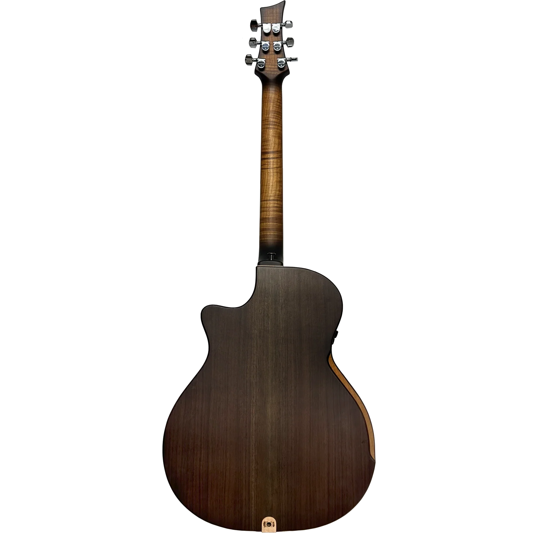 The 2P GA G2 Grand Auditorium integrates the latest and best features to come out of our custom shop. The top is a natural blend of Engelmann and Sitka Spruce called Lutz spruce from Canada’s Skeena Valley. This top has the power of Engelmann and the warmth of coastal Sitka.