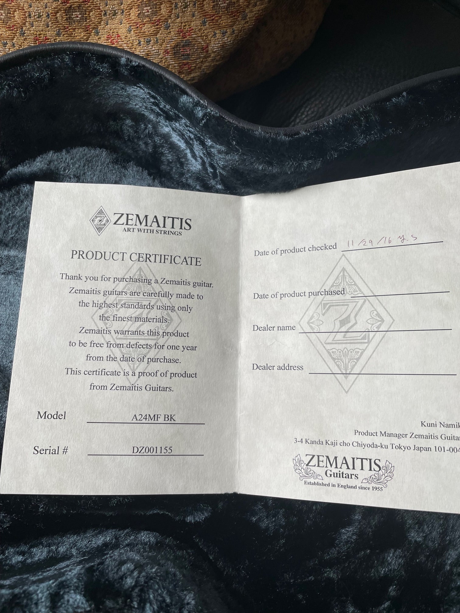 Zemaitis - A24MF BK 2012 Made In Japan - Mint